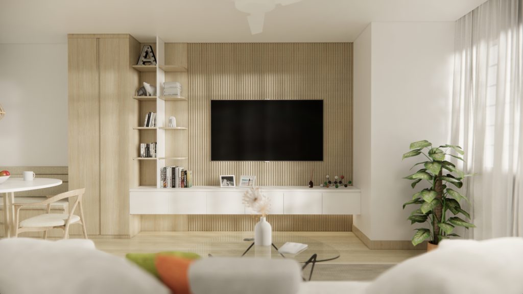 For example, a typical 4-room HDB flat in Singapore often has a long and narrow living room. If a deep sofa and bulky TV console are placed opposite each other, circulation becomes tight.